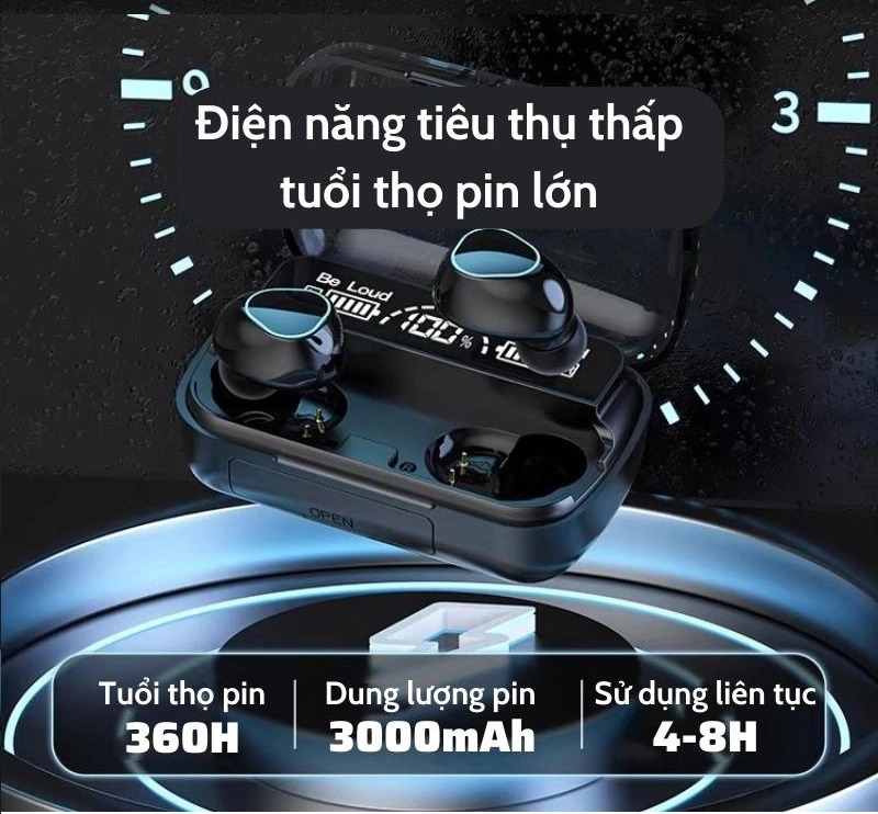 - Màn hình LED kỹ thuật số, biết được thời gian thực tế về nguồn điện của dock sạc và nguồn điện trái phải tai nghe.